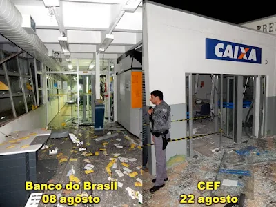 O BB esta prestando seus serviços normalmente no interior de sua agência ainda em reformas, exceto: recebimento de água, luz, telefone, depósito em dinheiro e transferência. A probabilidade dos caixas automáticos da agência estarem operando ainda esse ano é de 100%, porém para o restabelecimento do prédio e atendimento pleno não há previsão.